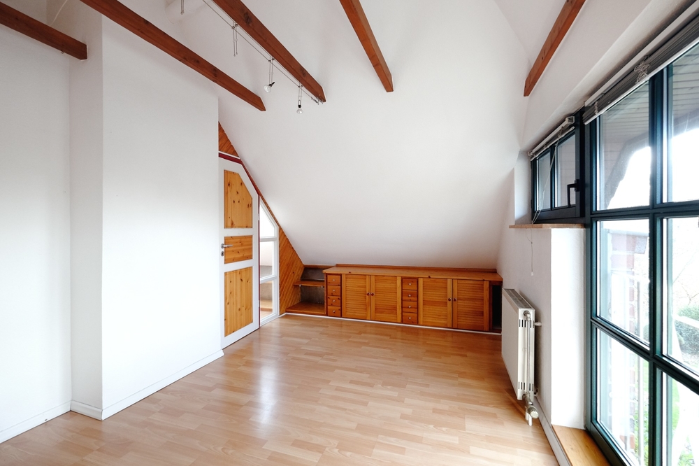 Über einen hochwertigen Treppenaufgang mit schwarzem Granit gelangt man ins Dachgeschoss. Zusätzlich zu zwei Schlafzimmern und einem sehr geräumigen Badezimmer mit Badewanne und Dusche gibt es hier einen weiteren kleinen Raum, der wahlweise als begehbares Kleiderzimmer oder kleiner Officeraum genutzt werden kann. Diverse Einbauschränke nutzen das Raumangebot sinnvoll. Der ausgebaute Spitzboden, ebenfalls mit diversen Einbauschränken, wäre für Jugendliche sicher ein Highlight, denn hier ist man ganz für sich!