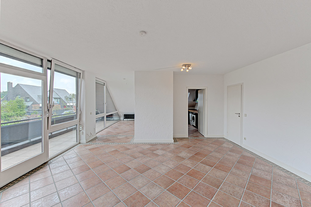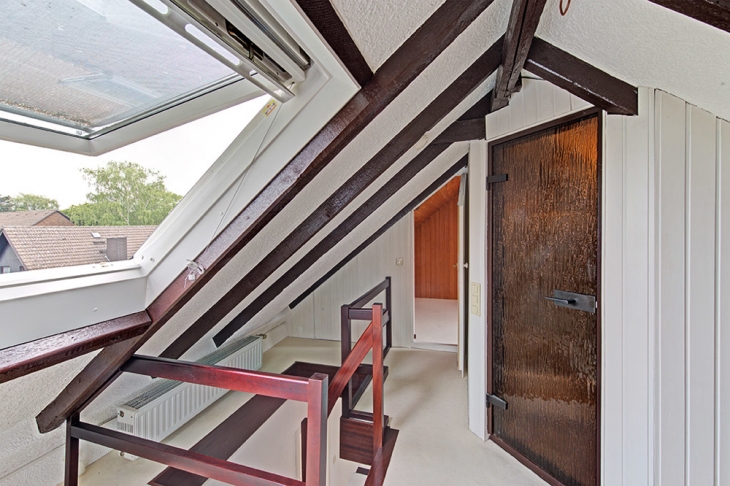 Die Wohnung im Dachgeschoss weist eine Wohnfläche von ca. 84m² auf und verfügt über weitere Nutzfläche im Spitzboden, welche wohnlich ausgebaut und über eine fest verbaute Holztreppe in der Diele zugängig ist. Beim Betreten der Wohnung befindet sich zur Rechten ein grosszügiges und helles Tageslichtbadezimmer mit Badewanne und Dusche. Das ebenfalls sehr geräumige Schlafzimmer wurde mit hochwertigen Einbauschränken versehen, die nicht nur optimalen Stauraum bieten, sondern auch ansprechende Wandboards. Fast 40m² Wohn- und Esszimmer erstrecken sich über die gesamte Giebelseite des Hauses mit Zugang zum überdachten Balkon, ebenfalls über die komplette Breite. Bei der angrenzenden Küche handelt es sich auch in dieser Wohnung aktuell um einen geschlossen Raum, der jedoch problemlos geöffnet werden kann. Bei dem wohnlich ausgebauten Spitzboden handelt es sich um Nutzfläche, über sich sicherlich jeder freuen kann und eine hübsche Erweiterung darstellt.