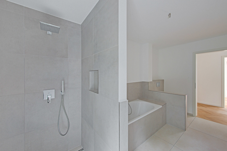 - Bäder: Hochwertige Armaturen, Waschtische, bodengleiche Duschen, Wanne und WC, Deckenbrause