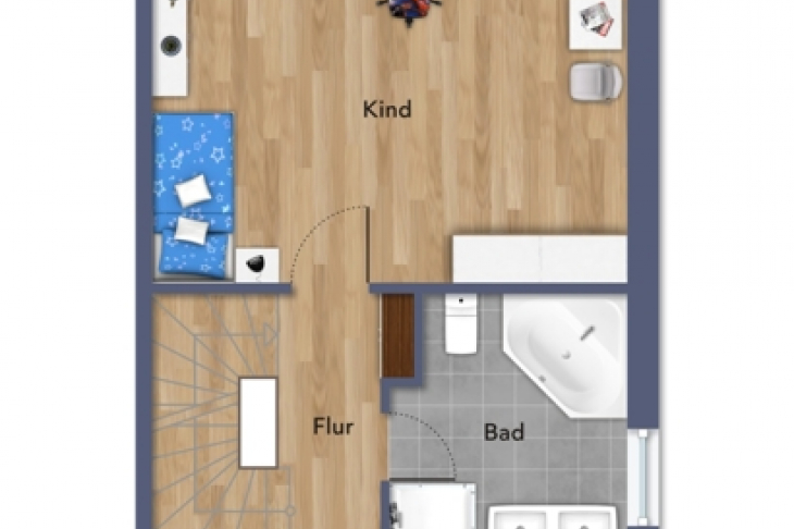 Im 1. OG befinden sich neben einem hellen Tageslichtbad mit Eckwanne und Dusche ausgestattet, zwei großzügige Schlafzimmer mit rd. 18 m² und 23 m², die mit ihrer annähernd gleichwertigen Gestaltung sicherlich keine Aufteilungsrangeleien als Schlafzimmer aufkommen lassen.