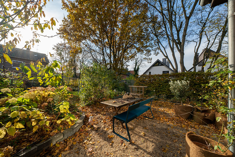 Das sonnenverwöhnte Süd-Grundstück liegt absolut ruhig und idyllisch an einem kleinen Fußweg mit herrlichem Baumbestand, welcher städtisch gepflegt wird. Der Garten ist liebevoll und familienfreundlich angelegt und wird allen Wünschen von Familien, Kindern sowie Gartenliebhabern gerecht. Ein kleiner, feiner Garten, welcher durchaus als ein weiteres, eben „grünes Zimmer“ als idealen Ort der Entspannung, Hobby- und Freizeitgelände oder als Spielplatz, gesehen werden kann.