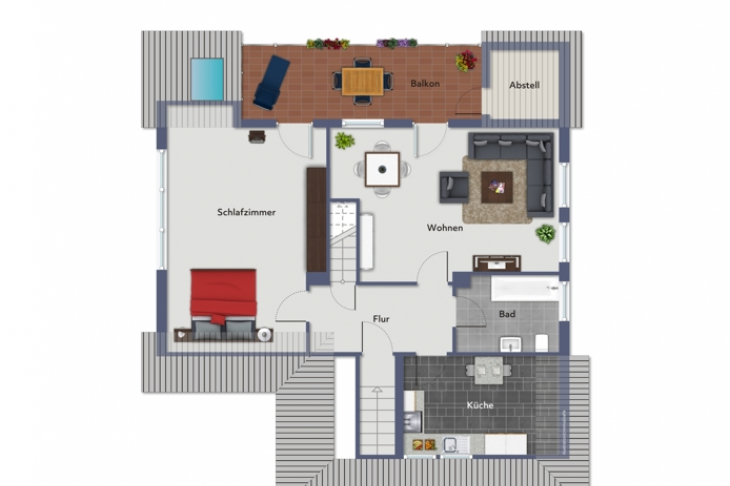 - ausgebautes Dachgeschoss mit überdachter Loggia