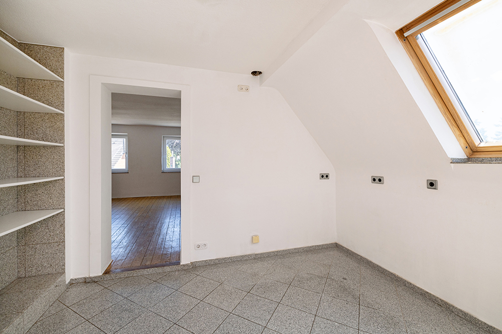 Im Spitzboden gibt es weitere sinnvolle Staufläche. Im Jahr 2013 wurde das Dach neu eingedeckt und gedämmt sowie neue Velux-Fenster eingebaut.