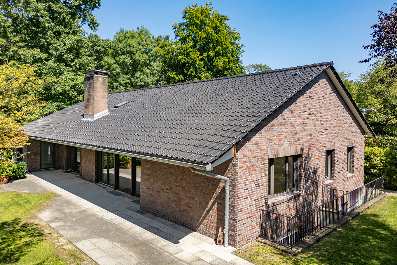 Das im Ursprung 1968 erbaute Haus wurde in den Jahren 2023/2024 einer umfassenden Kernsanierung unterzogen und dabei nahezu neu erschaffen. Die Außenfassade wurde nach aufwendiger Isolierung vollständig erneuert und mit einem hochwertigen Klinkerverblender versehen, der traditionelle Wertigkeit mit moderner Eleganz verbindet. Großflächige Fensterfronten in edlem Anthrazit sorgen für lichtdurchflutete Räume und eine klare architektonische Linienführung. Das neu eingedeckte und isolierte Dach sowie die markante Fassadengestaltung mit Bauhaus-inspirierten Elementen unterstreichen den zeitlosen Charakter.