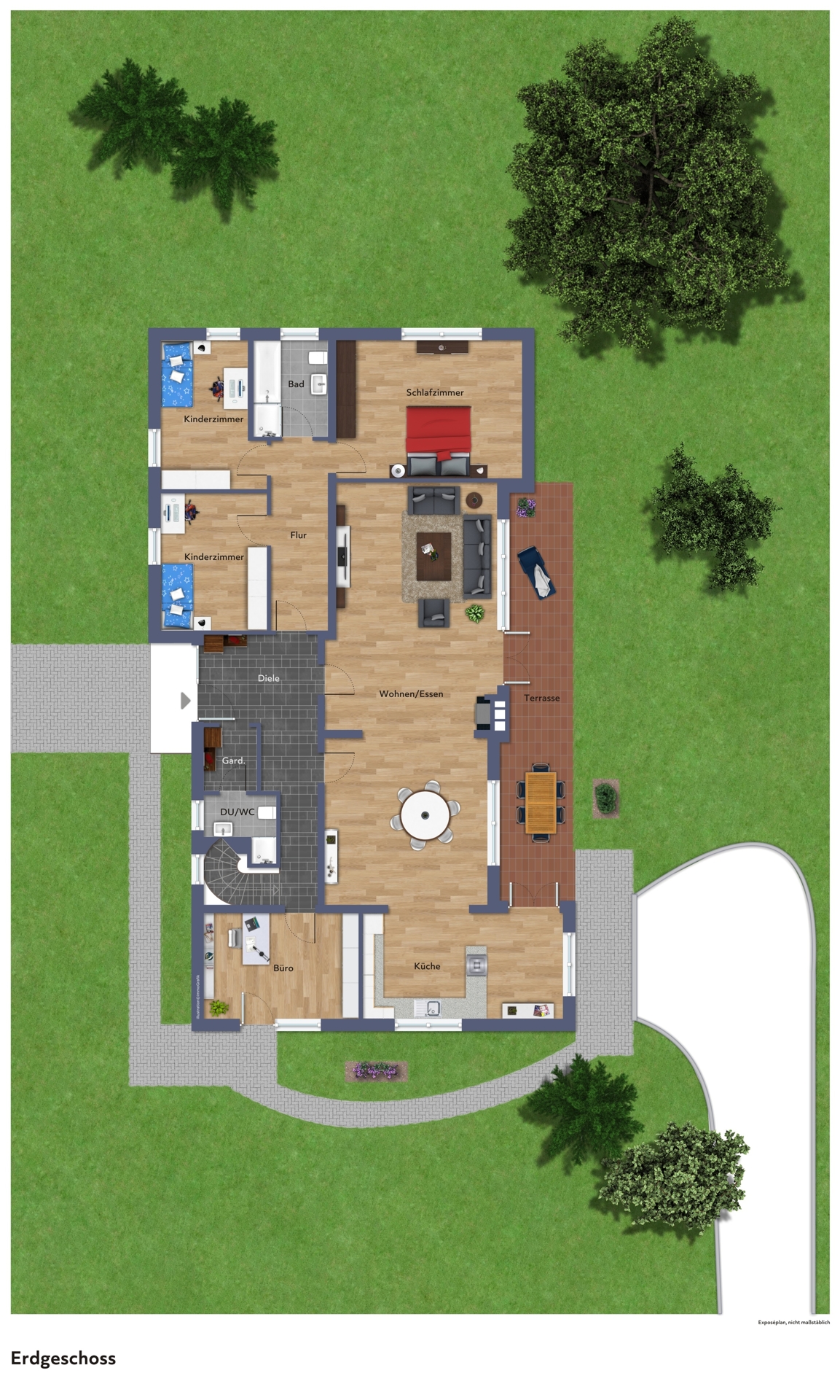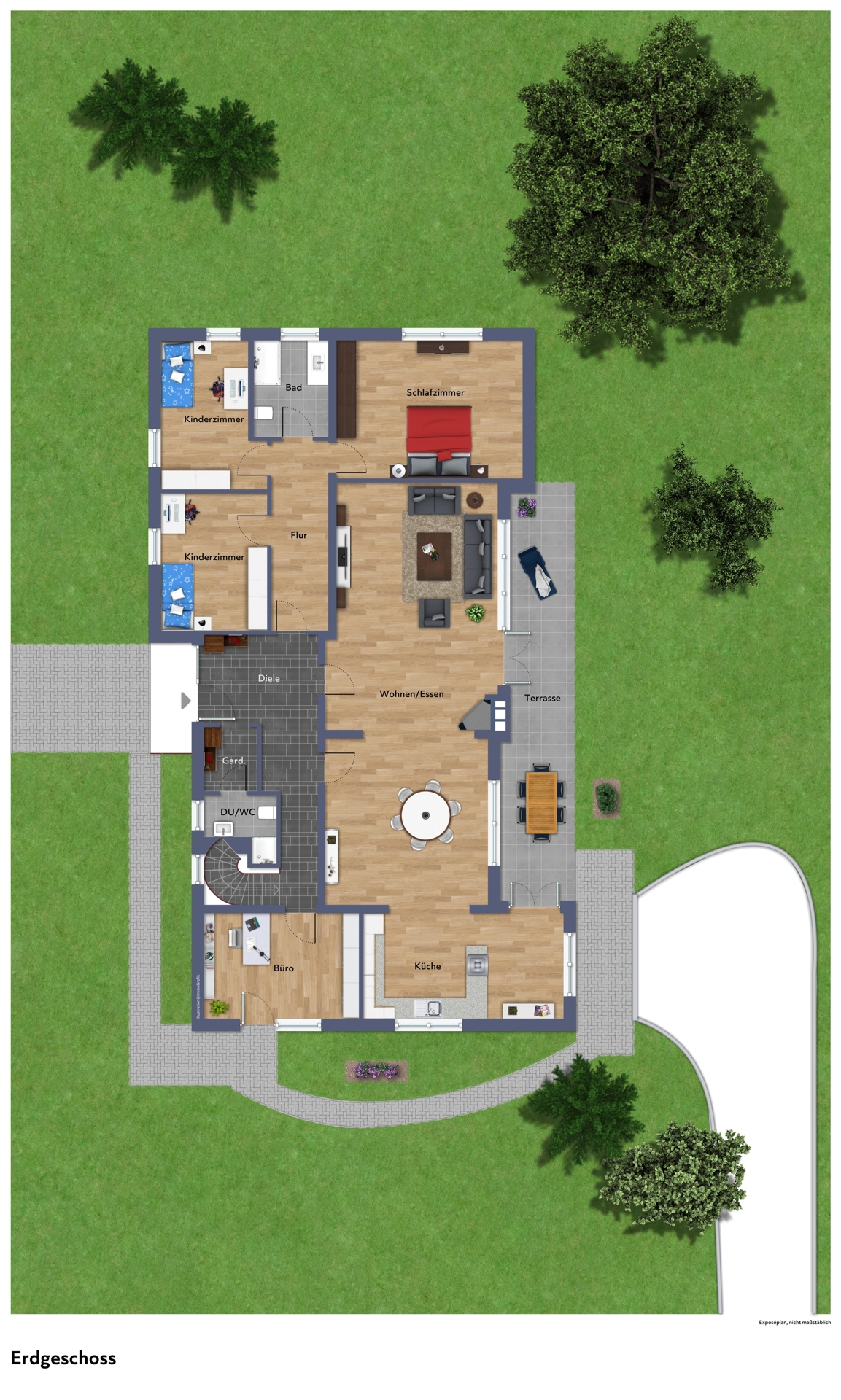 - zwei Kinderzimmer, die ebenso wie das Elternzimmer das große, moderne Duschbad nutzen