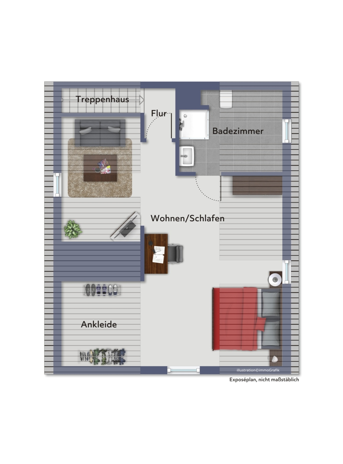 - 1 Tageslichtbadezimmer mit Dusche im Dachgeschoss