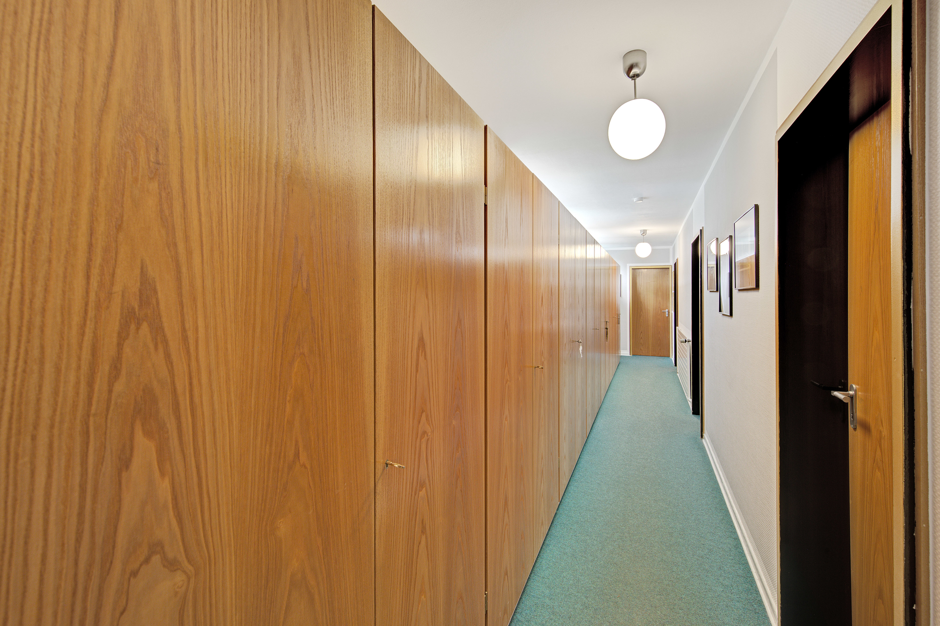 - Original Echtholz-Einbauschränke ca. 9,30 m im Schrankflur