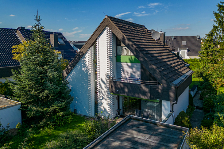 Die hier angebotene architektonisch ausgefallene Doppelhaushälfte mit weiß geschlemmter Kalksandsteinfassade befindet sich in fast ländlicher Umgebung nördlich vom Krefelder Stadtwald inmitten geschmackvoller Wohnbebauung.