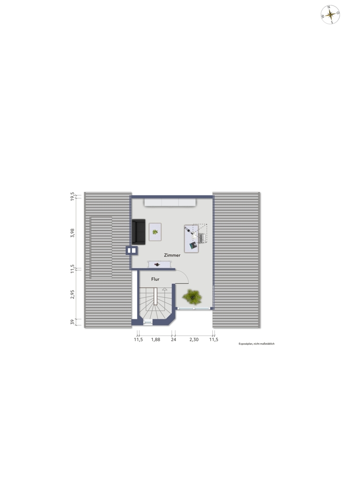 Eine Etage höher bietet das Studio mit ca. 14 m² Größe ein weiteres Highlight, welches vielseitig als Kinderzimmer, Gästezimmer oder Home-Office Verwendung finden kann.