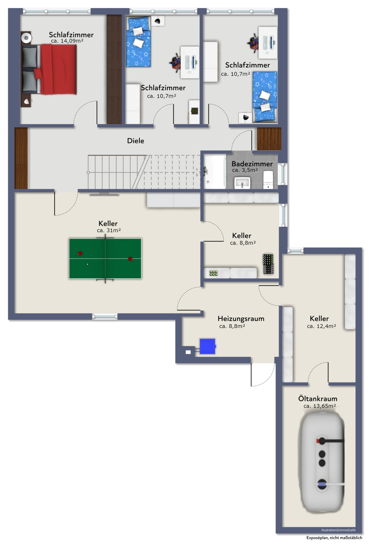 - ca. 40m² wohnlich ausgebaute Nutzfläche im Untergeschoss