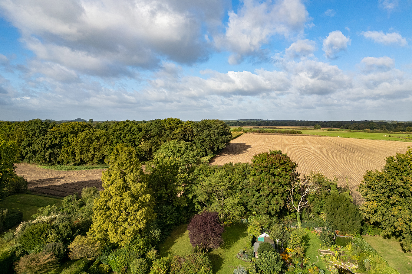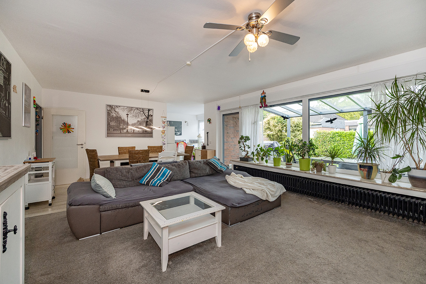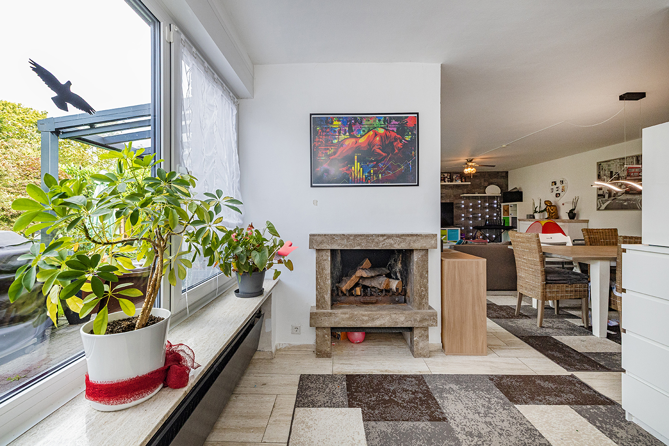 Der Bungalow empfängt Sie mit einem kleinen Windfang und einem angrenzenden Gäste-WC. Rechter Hand des zentralen Flurs befinden sich eine geräumige Küche, zwei Schlafzimmern sowie ein modernes Tageslichtbadezimmer mit Badewanne und Dusche. Zur Linken liegen ein separates Büro und das großzügige Wohn-Esszimmer mit angrenzendem Kaminzimmer. An dieser Stelle ist anzumerken, dass das heutige Büro der ursprünglichen Küchenlage entspricht. Diese Raumsituation kann nicht nur problemlos wieder hergestellt, sondern auch in den Wohnbereich integriert werden, da es sich um keine tragenden Wände handelt. Liebhaber offener Wohnkonzepte können hier eine großzügige Fläche von rund 48 m² für Küche und Wohnen planen – perfekt für gesellige Abende oder entspannte Familienmomente. Große Fensterflächen bringen viel Licht ins Haus und schaffen einen direkten Bezug zum Garten.