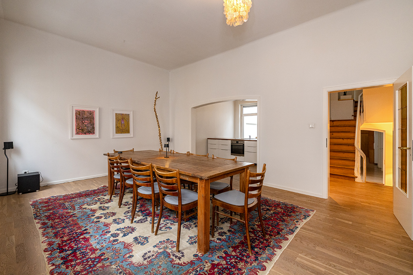 - Insgesamt vermittelt das Erdgeschoss eine Atmosphäre von Stil, Zurückhaltung und Authentizität. Ein Stück Stadtgeschichte, das mit viel Feingefühl und Sinn für Qualität in die Gegenwart geführt wurde.