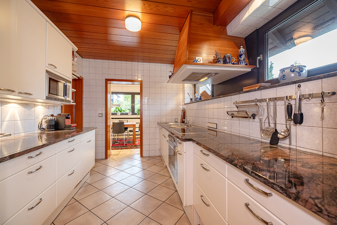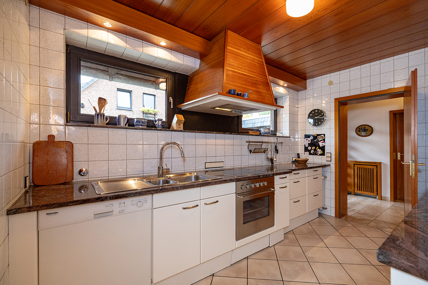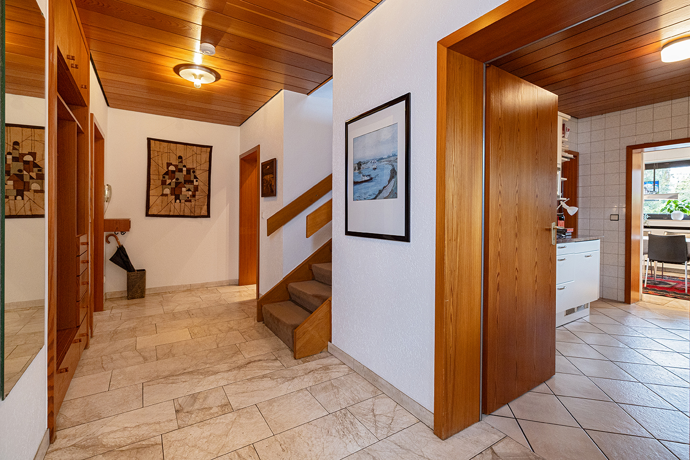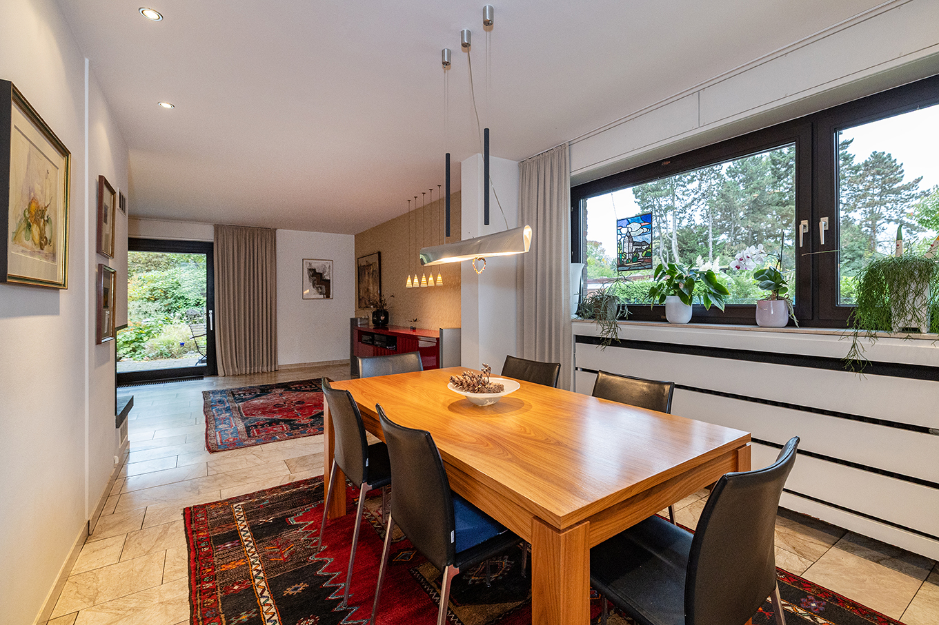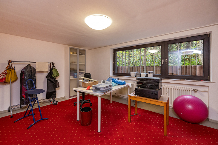Der Keller unterstreicht die Vielseitigkeit dieses Hauses. Ein großer, heller Mehrzweckraum, ein gemütlicher Hobbyraum mit Barbereich sowie Hauswirtschafts-, Lager- und Technikräume schaffen reichlich Platz. Die Heiztechnik (Gas-Brennwert, 2001) sowie die hochwertigen Holzfenster mit erneuerter Doppelisolierverglasung aus 2010 dokumentieren den kontinuierlichen Pflegezustand. Ein Modernisierungsrückstau besteht nicht – lediglich renovative Anpassungen nach Geschmack stehen an.