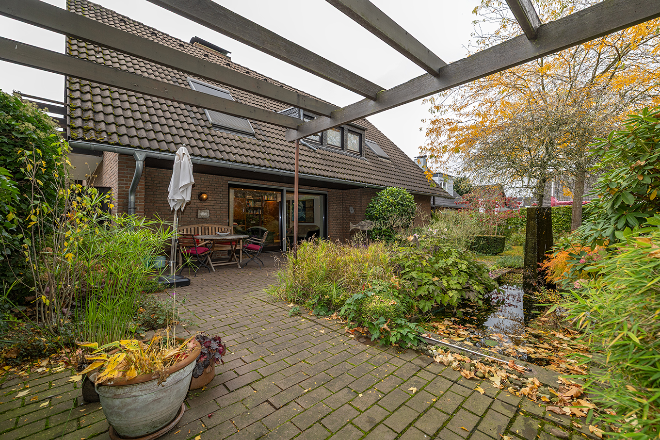 - Gepflegter, gestalteter Garten mit Teichanlage und Pergola