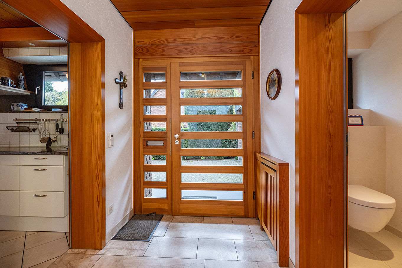 Das Haus liegt im Krefelder Stadtteil Uerdingen, einem eigenständig gewachsenen Vorort mit eigener Ortsverwaltung und einer sehr gut entwickelten Infrastruktur. Die Immobilie befindet sich in einem gepflegten und anspruchsvollen Wohngebiet, das überwiegend von freistehenden Einfamilienhäusern geprägt ist. Die Nachbarschaft ist ruhig, gewachsen und hochwertig – ein Umfeld, das besonders bei Familien sehr geschätzt wird.