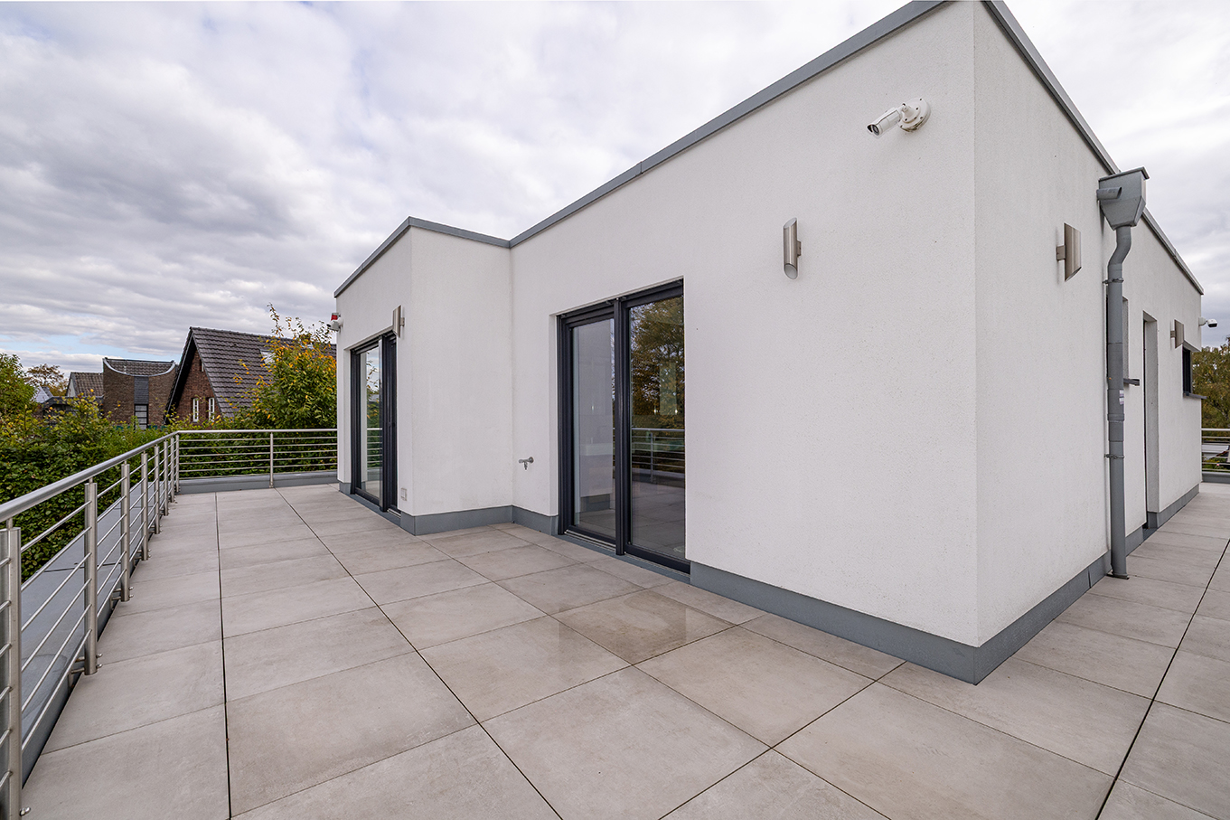 Diese außergewöhnliche Neubau Avantgarde-Villa am Feldrand liegt am Rande der Niepkuhlen mit individueller Einfamilienhaus- und Villenbebauung im äußerst beliebten Ortsteil Verberg; seit jeher eines der schönsten und besten Wohngebiete von Krefeld.