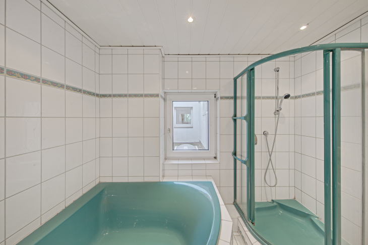 Ein eigenes Badezimmer auf derselben Etage, ideal für den Familienalltag.