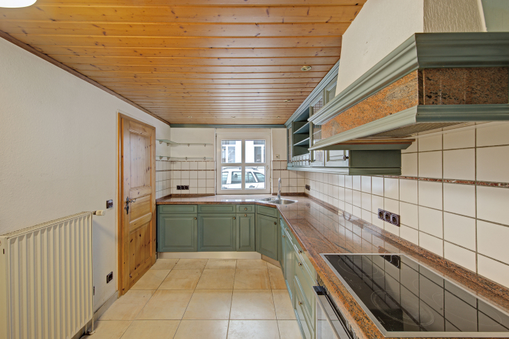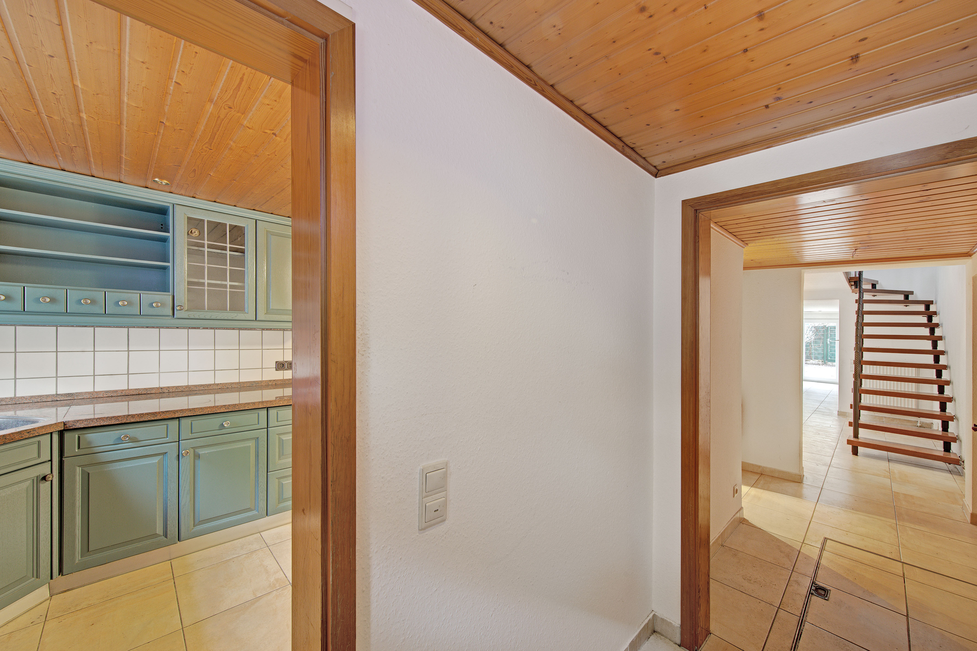 Links des Eingangs befindet sich die Einbauküche, perfekt eingebettet für kurze Wege im Alltag.