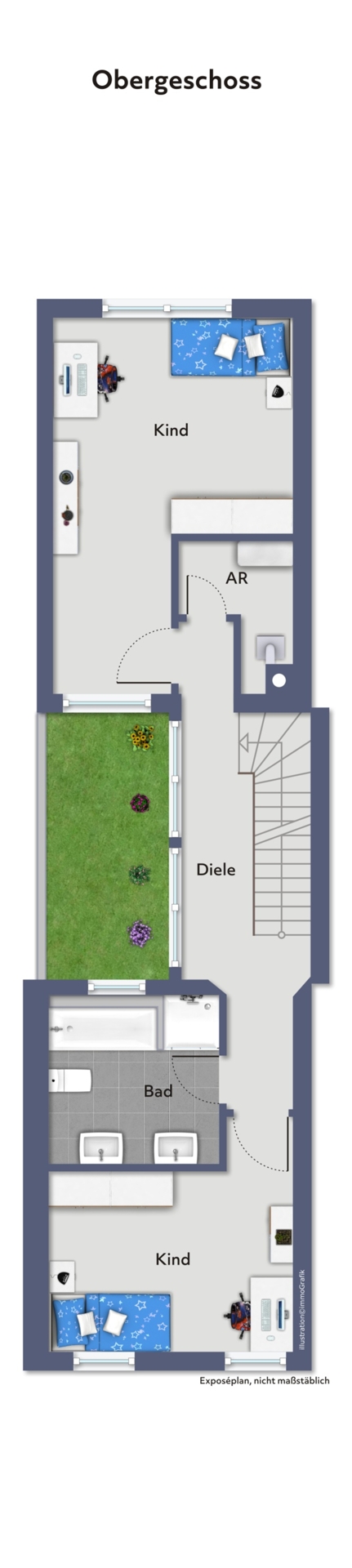 Das Obergeschoss bietet eine wunderbar klare und familienfreundliche Struktur: