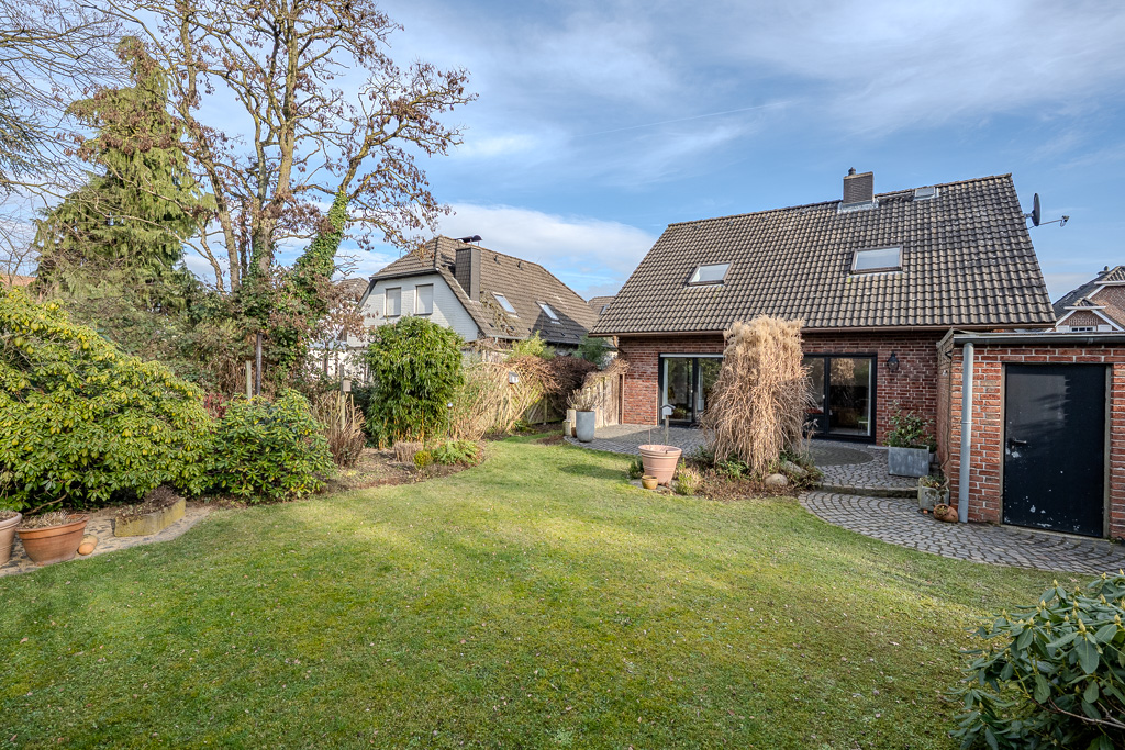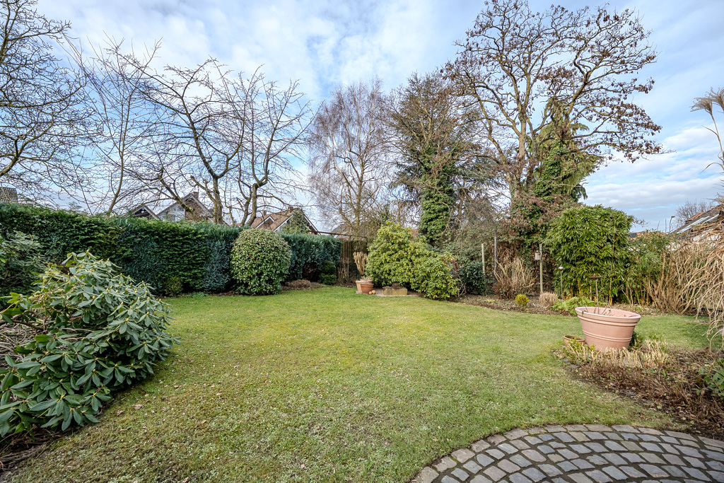Die 9 Meter lange, massiv gebaute Garage ist direkt angebunden und bietet nicht nur ausreichend Platz für das Auto, sondern auch reichlich Raum für Gartengeräte, Fahrräder und weiteres Equipment. Der liebevoll angelegte Garten mit Westausrichtung ist ein echter Wohlfühlort. Zwei direkt am Haus gelegene Terrassen laden dazu ein, sonnige Nachmittage und laue Abende im Freien zu genießen – ob beim Spielen mit den Kindern, beim Grillen oder einfach beim Entspannen nach einem langen Tag.