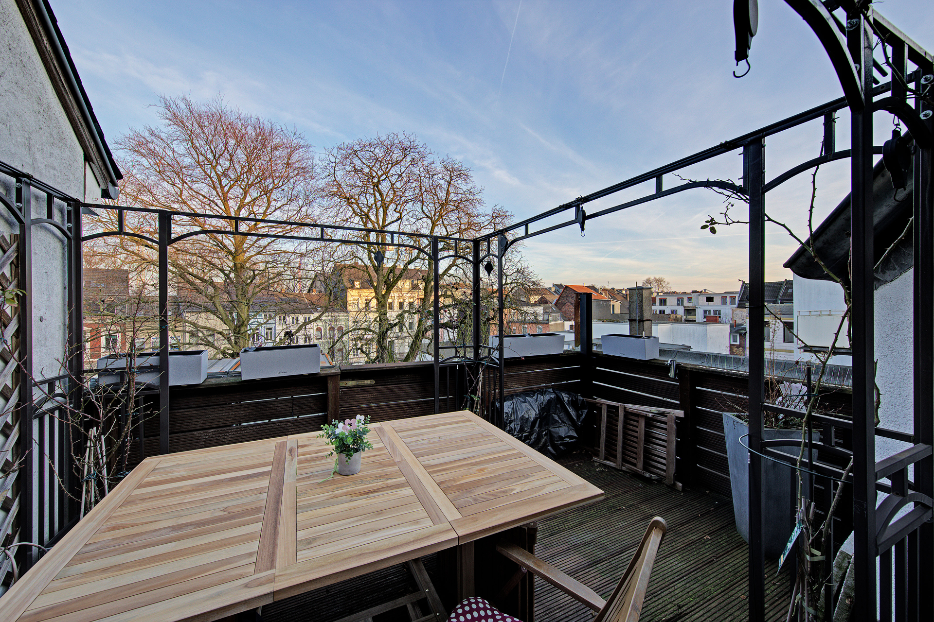 Über einen separaten Zugang gelangen Sie in die Eigentümerwohnung. Auf ca. 116 m² Wohnfläche, verteilt über zwei Etagen, entfaltet sich ein behagliches Wohnambiente. Das Dachgeschoss bietet eine schöne Austrittsmöglichkeit – ideal, um frische Luft und ruhige Momente über den Dächern von Uerdingen zu genießen. Die Ebenen lassen sich bei Bedarf auch getrennt voneinander nutzen und eröffnen zusätzliche Flexibilität.