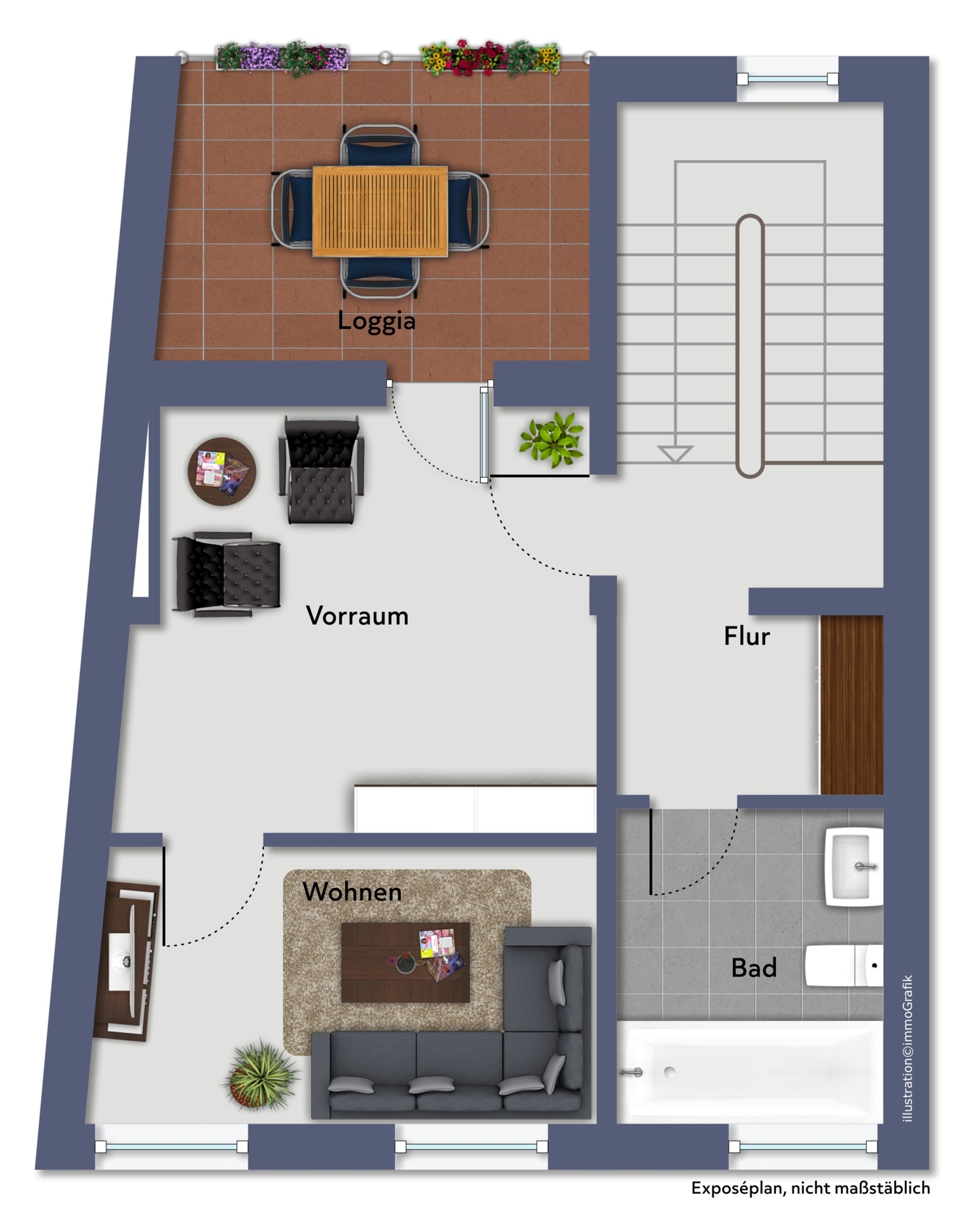 - Ausgebautes Dachgeschoss mit sep. Duschbadezimmer und schöner Terrasse