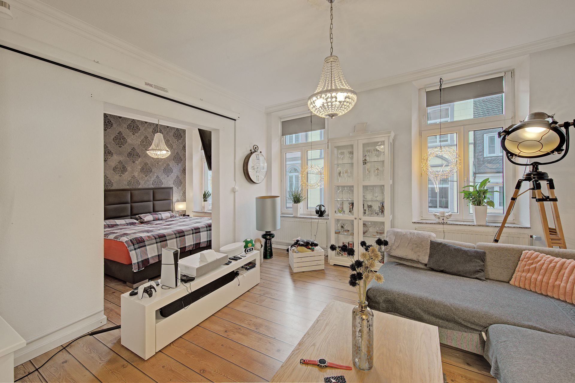 Über einen separaten Zugang gelangen Sie in die Eigentümerwohnung. Auf ca. 116 m² Wohnfläche, verteilt über zwei Etagen, entfaltet sich ein behagliches Wohnambiente. Das Dachgeschoss bietet eine schöne Austrittsmöglichkeit – ideal, um frische Luft und ruhige Momente über den Dächern von Uerdingen zu genießen. Die Ebenen lassen sich bei Bedarf auch getrennt voneinander nutzen und eröffnen zusätzliche Flexibilität.