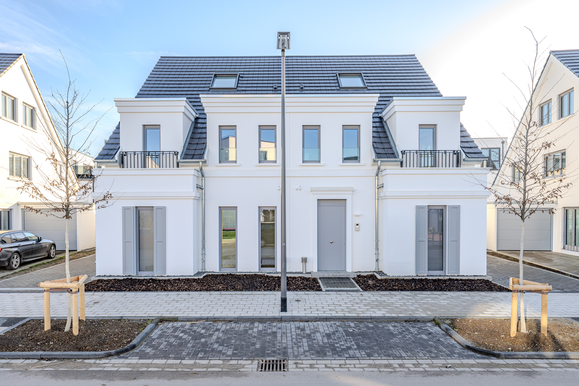 Die großzügigen Doppelhausvillen überzeugen durch neoklassizistische Architekturdetails und bieten Platz und Raum für Groß und Klein. Ihre Villa erwartet Sie als gelungene Antwort auf Ihre Wohnwünsche und mit ausgewählten Details, die zu einer einladenden Wohnatmosphäre und hohem Komfort in Ihrem neuen Zuhause beitragen.