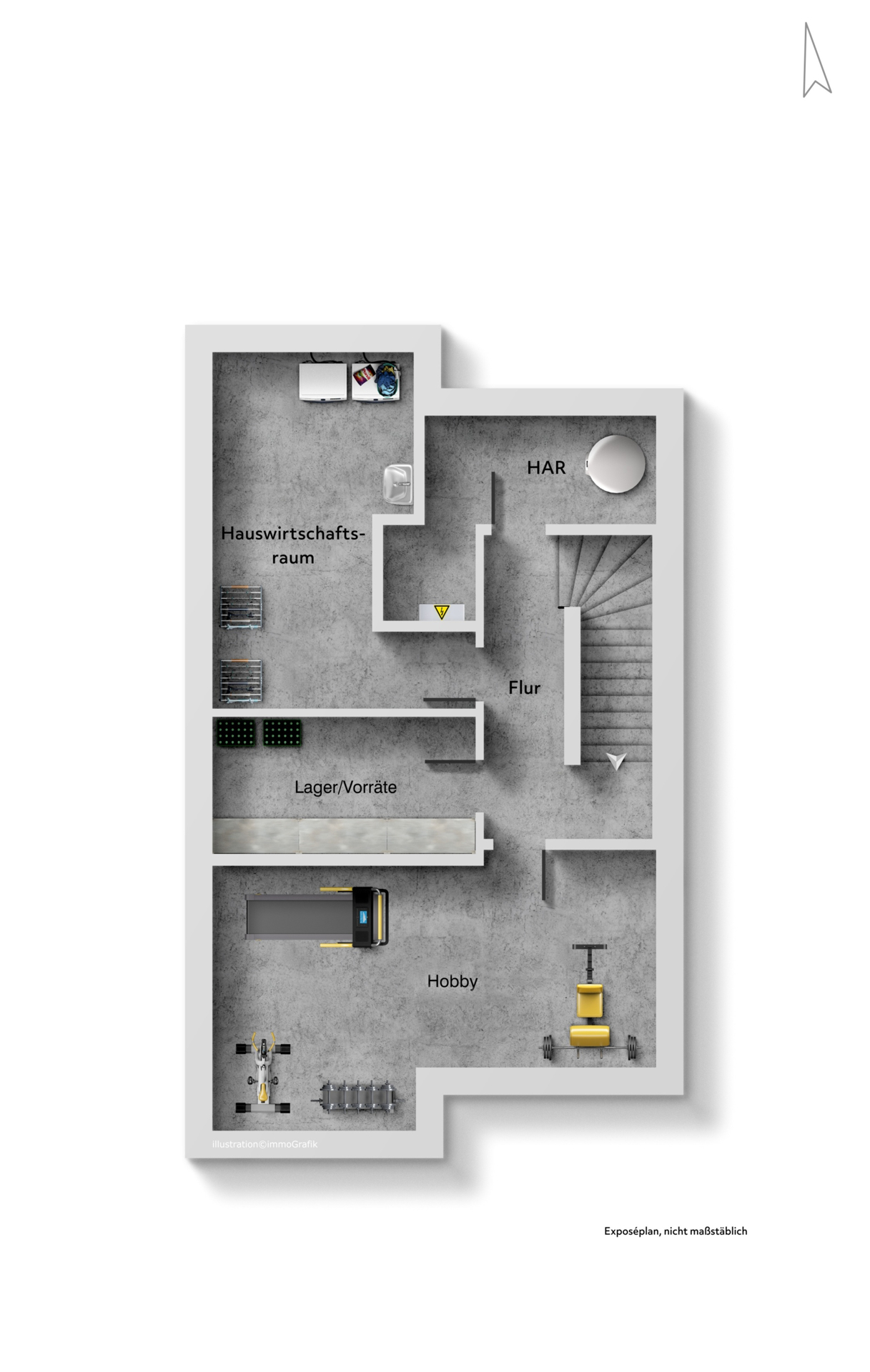 - Geräumiges Untergeschoss für Hobby, Lager, Hauswirtschaft, Technik; Nutzfläche ca. 68 m²