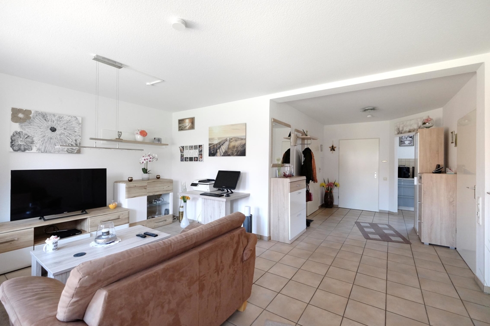 Bei der Erdgeschosswohnung handelt es sich um eine hübsche ca. 69m² große 2-Zimmer-Wohnung mit großzügiger Terrasse und Garten. Ein gemütliches Schlafzimmer sowie ein ca. 28m² großes Wohnzimmer sind angenehm ruhig zur Gartenseite gelegen. Vom Wohnzimmer aus gelangt man auf eine sehr große Terrasse mit kleinem Gartengrundstück in sonniger Südlage. Von der Diele aus ist, gibt es eine moderne, offene Raumgestaltung zu Wohnzimmer und Küche. Das innenliegende Badezimmer wurde behindertengerecht angelegt und verfügt über eine bodentiefe Dusche sowie den Stellplatz für Waschmaschine und Trockner. Für Besucher gibt es zudem ein separates Gäste-WC. Die zur Straßenseite liegende Küche punktet mit einer angrenzenden Abstellkammer, welche Vorräte, Putzutensilien und u.v.m. ordentlich verstaut.