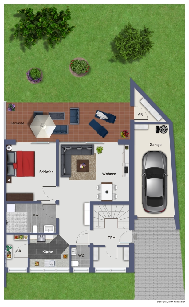 - 1 Abstellraum für Gartengeräte etc., Garagenanbau