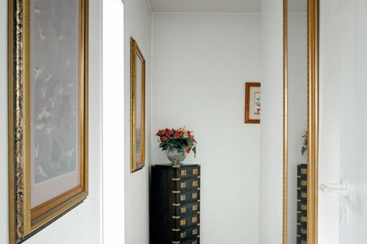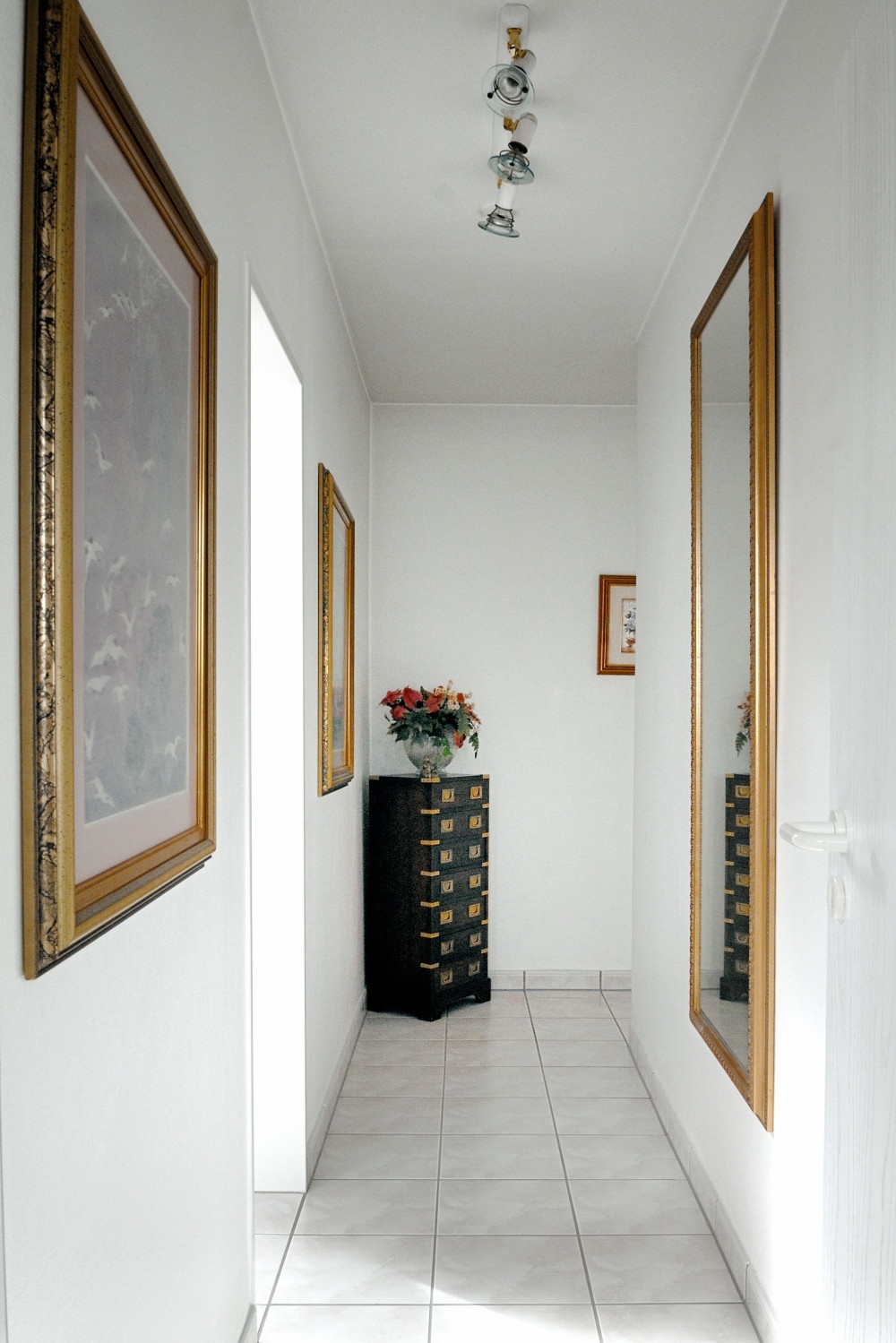 Die untere Wohnebene vereint mehr als sinnvoll alle Räumlichkeiten für die "helle Tageszeit". Das geräumige Gäste-WC ist hell gefliest und wurde 1998 komplett erneuert. Alltägliche Dinge, die man gerne gut sortiert und vor allem nicht im Blick haben möchte, finden ihren Platz in einem praktischem Abstellraum. Wirklich schön ist die grosszügige Küche, die sich mit einem individuellen Schnitt und bodentiefen Fenstern zu einer bezaubernden Loggia (ca. 6m²) auszeichnet. Hier können Sie im Sommer das Frühstück auch mal in der Morgensonne genießen! Das absolute Highlight auf dieser Etage ist jedoch sicherlich das über 60m² große Wohnzimmer mit seiner großen Fensterfront und einer süd-westlich ausgerichtetenTerrasse über die gesamte Breite von ca. 10m. Die Grosszügigkeit und helle Atmosphäre "über den Dächern" rücken jeden Einrichtungsstil in das beste Licht. Von der Terrasse genießen Sie einen herrlichen Blick und sind an schönen Sommerabenden den Sternen ganz nahe; wer braucht schon einen Garten, wenn an diesem Ort ausreichend Platz auf Begrünung wartet! Der Treppenaufgang ist im hinteren Bereich des Wohnzimmers gelungen eingefügt und führt Sie in die privateren Räume der oberen Etage. Das Hauptschlafzimmer ist ein weiterer Raum, der aufgrund seiner 6m breiten Fensterfront und des Weitblicks über die Dächer eine besondere Atmosphäre genießt. Das angrenzende Tageslichtbad ist mit hellgrauen, marmorisierten Fliesen ansprechend ausgestattet und verfügt über eine Badewanne und eine große Dusche für Zwei. Zu guter Letzt wäre das hübsche, kleine Gäste-Zimmer (mit begehbarem Kleiderschrank) zu erwähnen, welches natürlich auch problemlos als Arbeitszimmer genutzt werden kann.