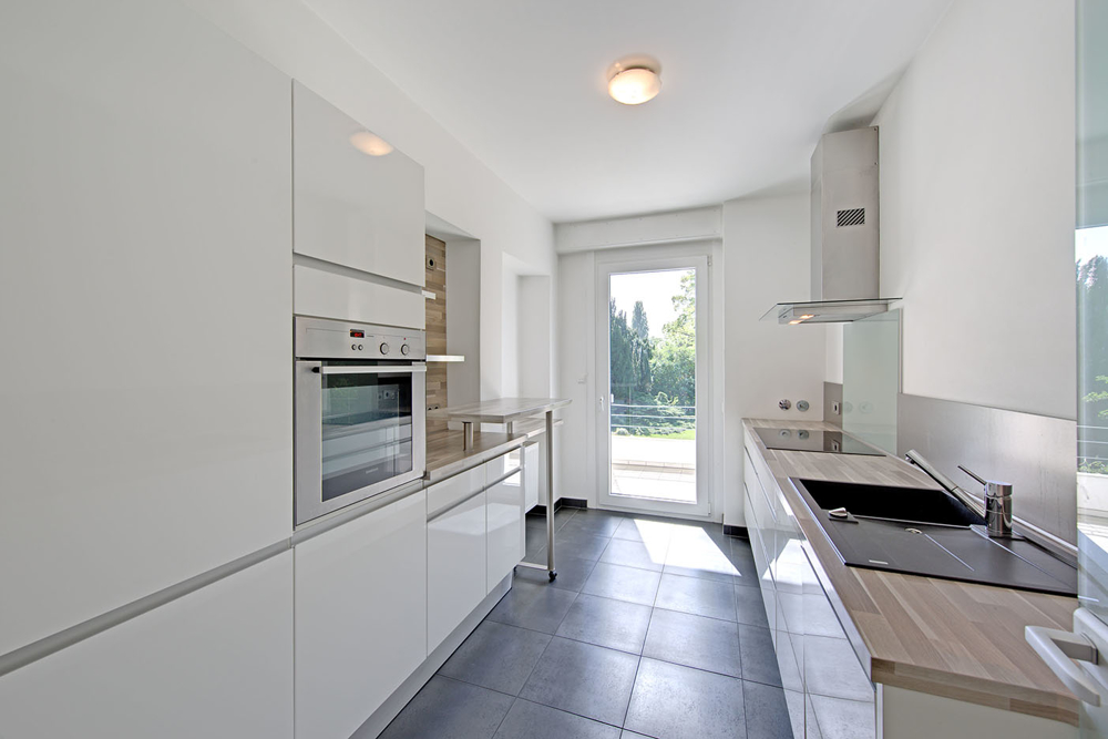 Die großzügige Hochparterre-Wohnung mit ca. 112 m² Wohnfläche und sonnigem Südbalkon liegt absolut ruhig und ungestört zur Gartenseite mit Blick ins Grüne. Die Wohnung wurde 2010 anspruchsvoll saniert: Erstklassige Holzfenster mit Rollläden, Parkettböden im Dielen- und Wohnbereich, Fliesen und Sanitärausstattung wurden geschmackvoll erneuert.
