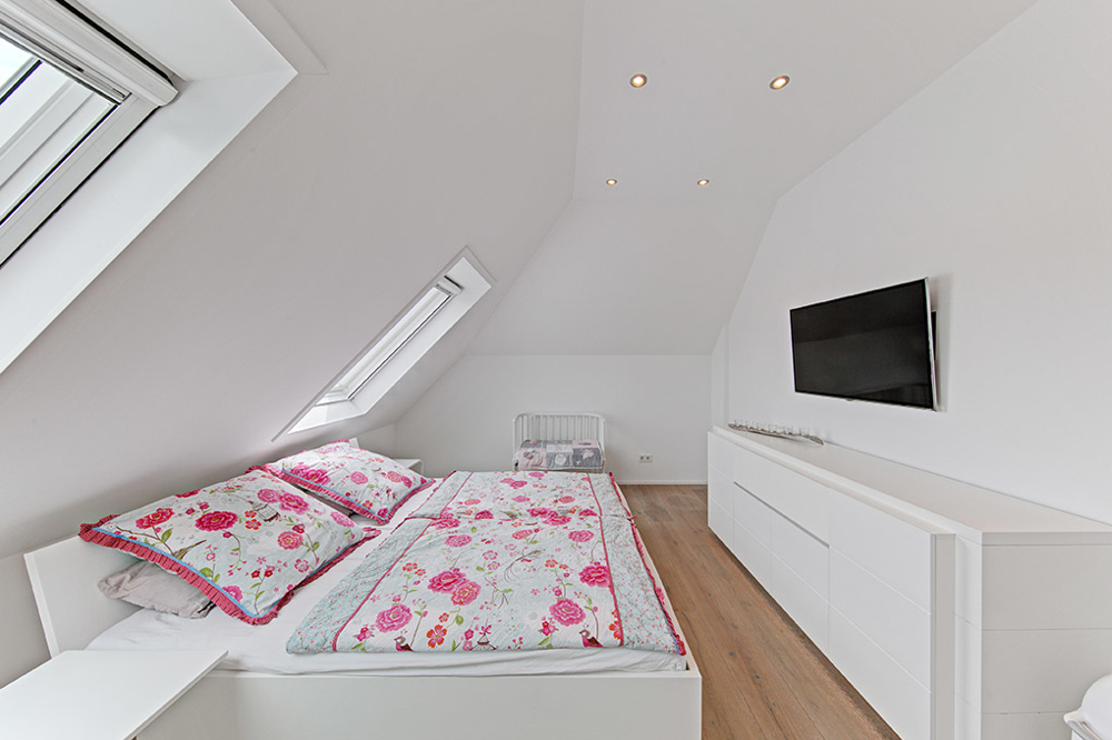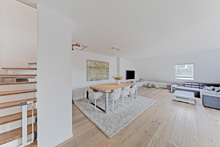 Die fantastische Maisonette-Wohnung erstreckt sich über das 2. Obergeschoss sowie Dachstudio. Die moderne "Haus in Haus"-Grundrissgestaltung über zwei Ebenen bietet offene Wohnbereiche mit einem anspruchsvollen Raumkonzept. Das großzügige Flächenangebot mit einer Wohnfläche von ca. 120 m², offeriert 4 lichtdurchflutete Zimmer, eine geräumige Küche, modernes Tageslicht Wannen- und Duschbad sowie Gäste-WC. Der sonnige Süd-Westbalkon mit Blick über die Dächer von Verberg passt sich dem gehobenen Wohnkomfort lückenlos an. Ebenso die Fußbodenheizung auf beiden Ebenen wird der lichtdurchfluteten und warmen Wohnatmosphäre gerecht.