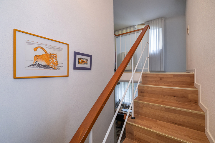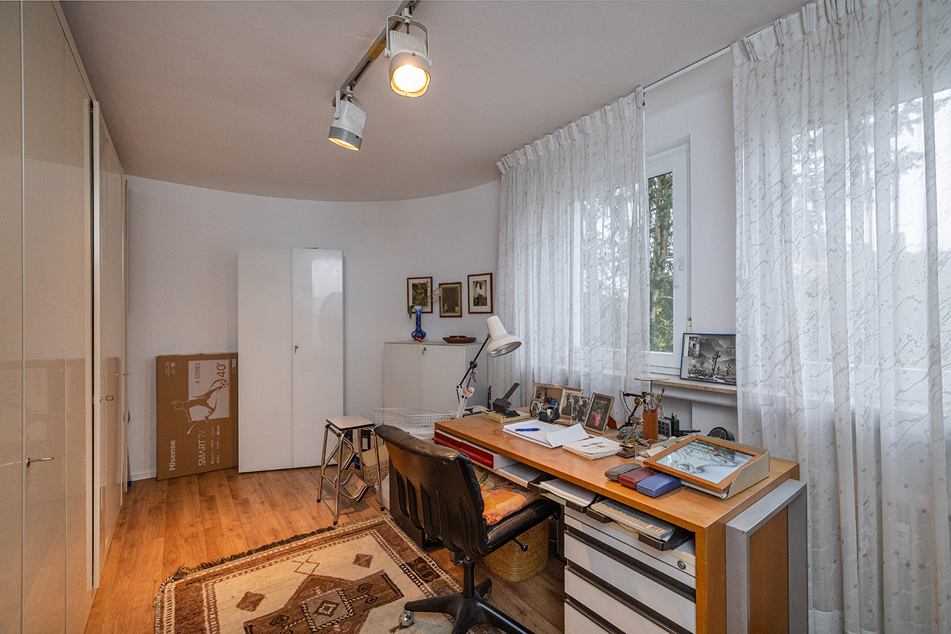 Über ein paar Stufen gelangt man in ein weiteres Zimmer - ideal als Büro, Gästezimmer oder Kinderbereich. Eine kleine Treppe hinunter eröffnet sich ein weiteres Zimmer, das flexibel genutzt werden kann.