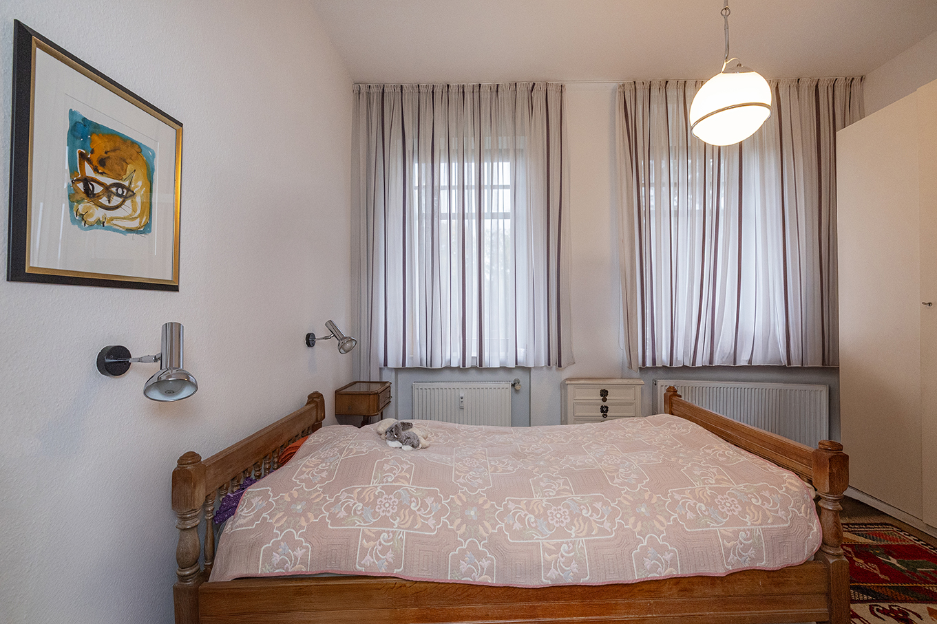 Vom Küchenbereich führt der Weg weiter in den privaten Schlaftrakt. Dort befinden sich das geräumige Schlafzimmer sowie das Tageslichtbadezimmer.