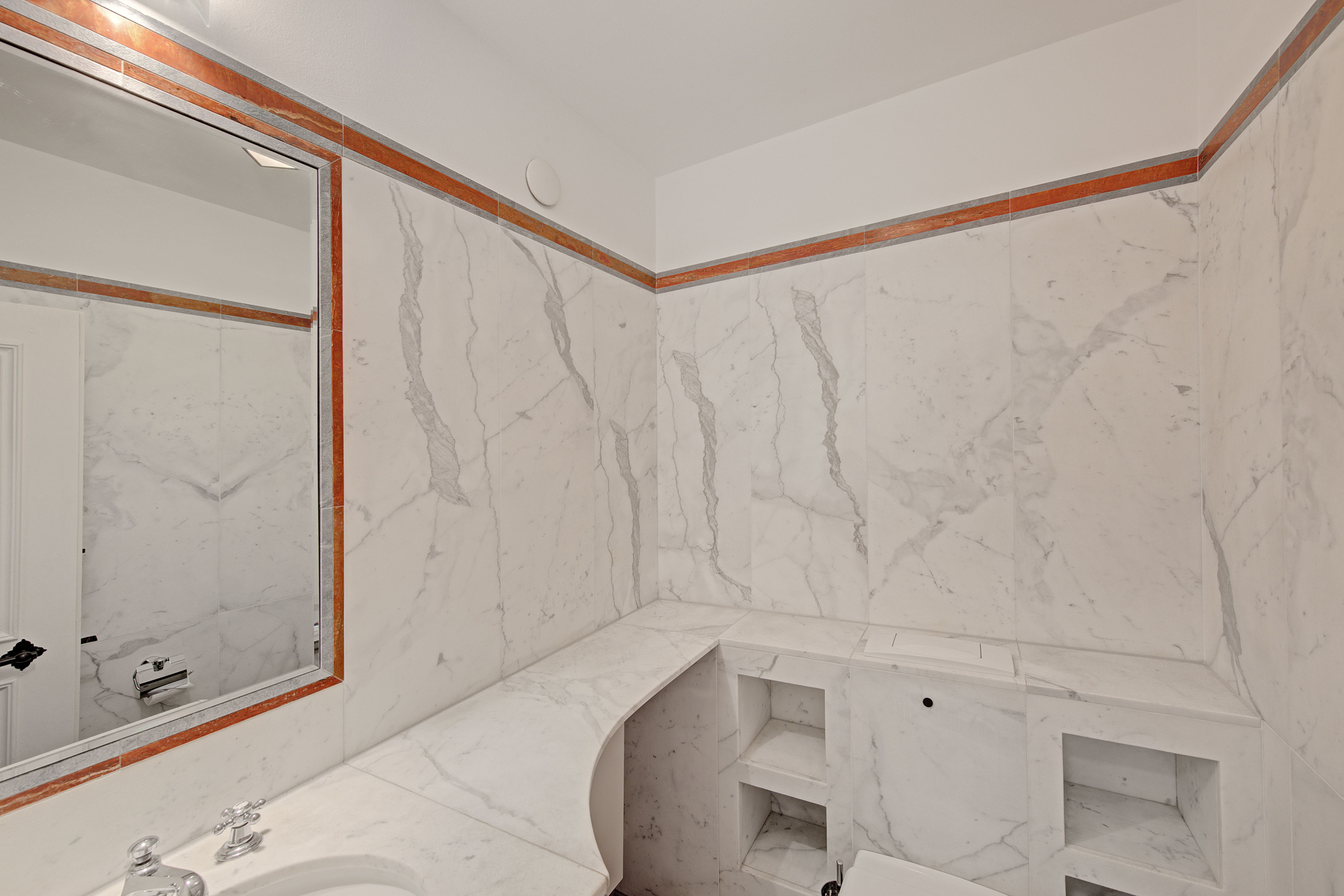 - Hochwertiger Waschtisch, raumhoch in Naturstein gearbeitet