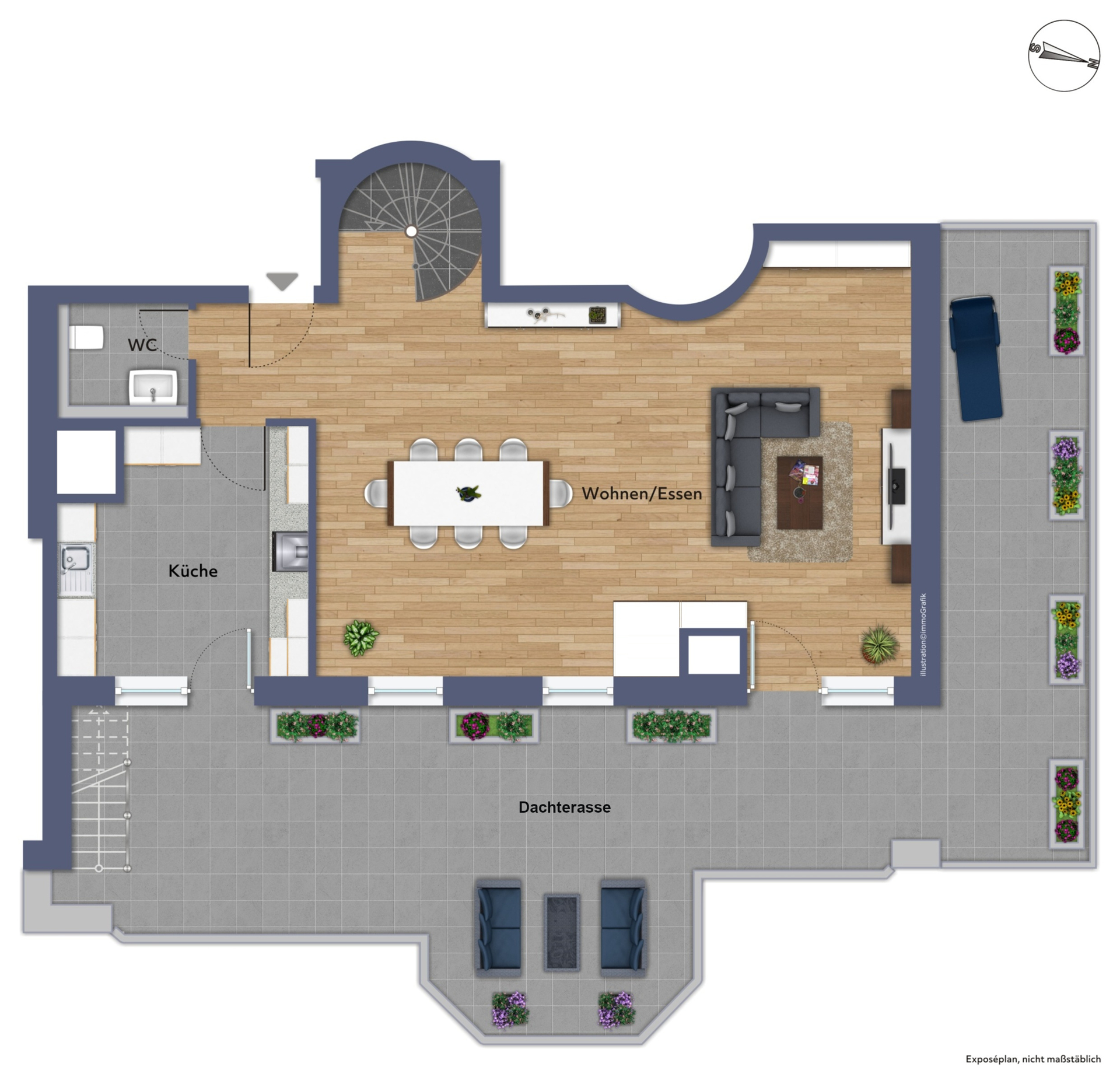 - Zusätzlich nordwestlich ausgerichteter Terrassenteil