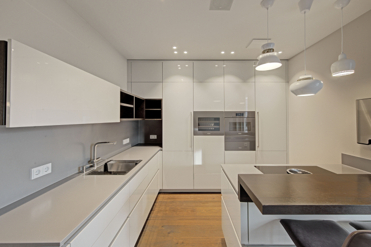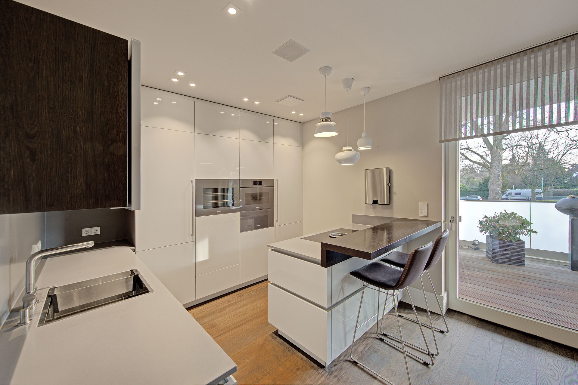- Separate High-End Premium-Küche mit Kochinsel (integrietes Bora-Kochfeld) und Bartresen -Vollausstattung hochwertiger Elektrogeräteund direkter Balkon-Zugang