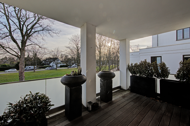 - Großzügig, überdachter Balkon mit Pflanzbehältern und Ausrichtung gen Osten sowie Süden