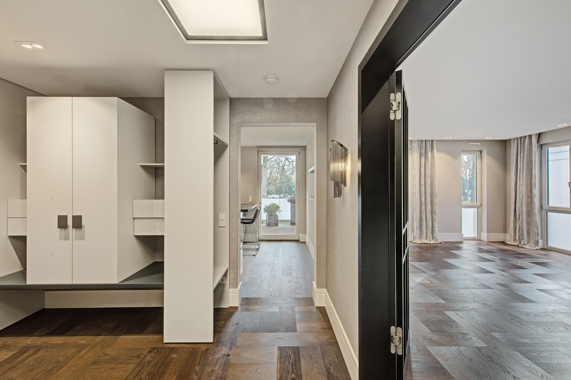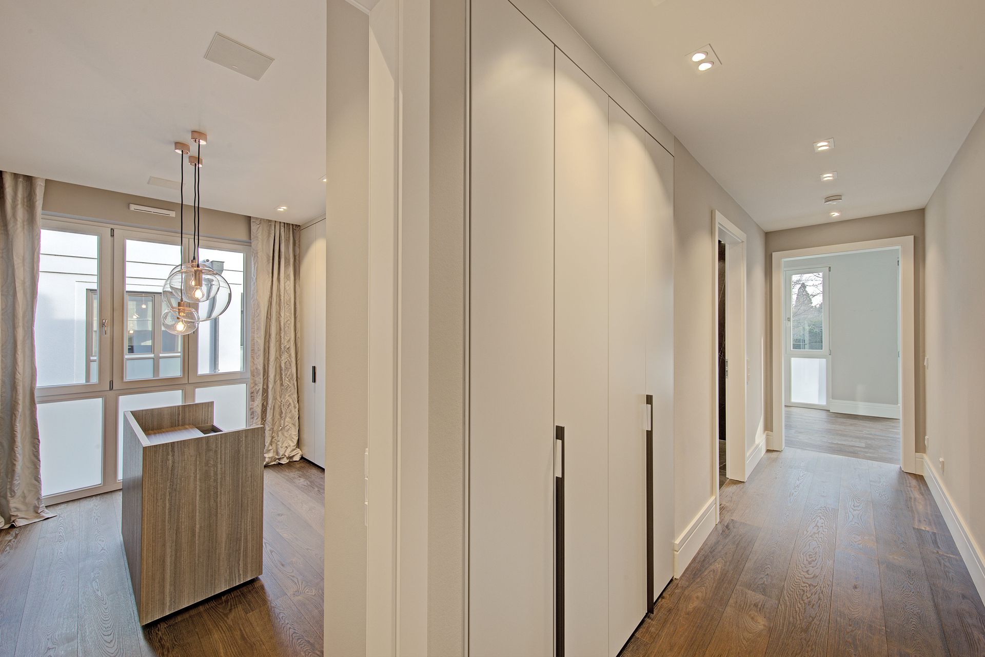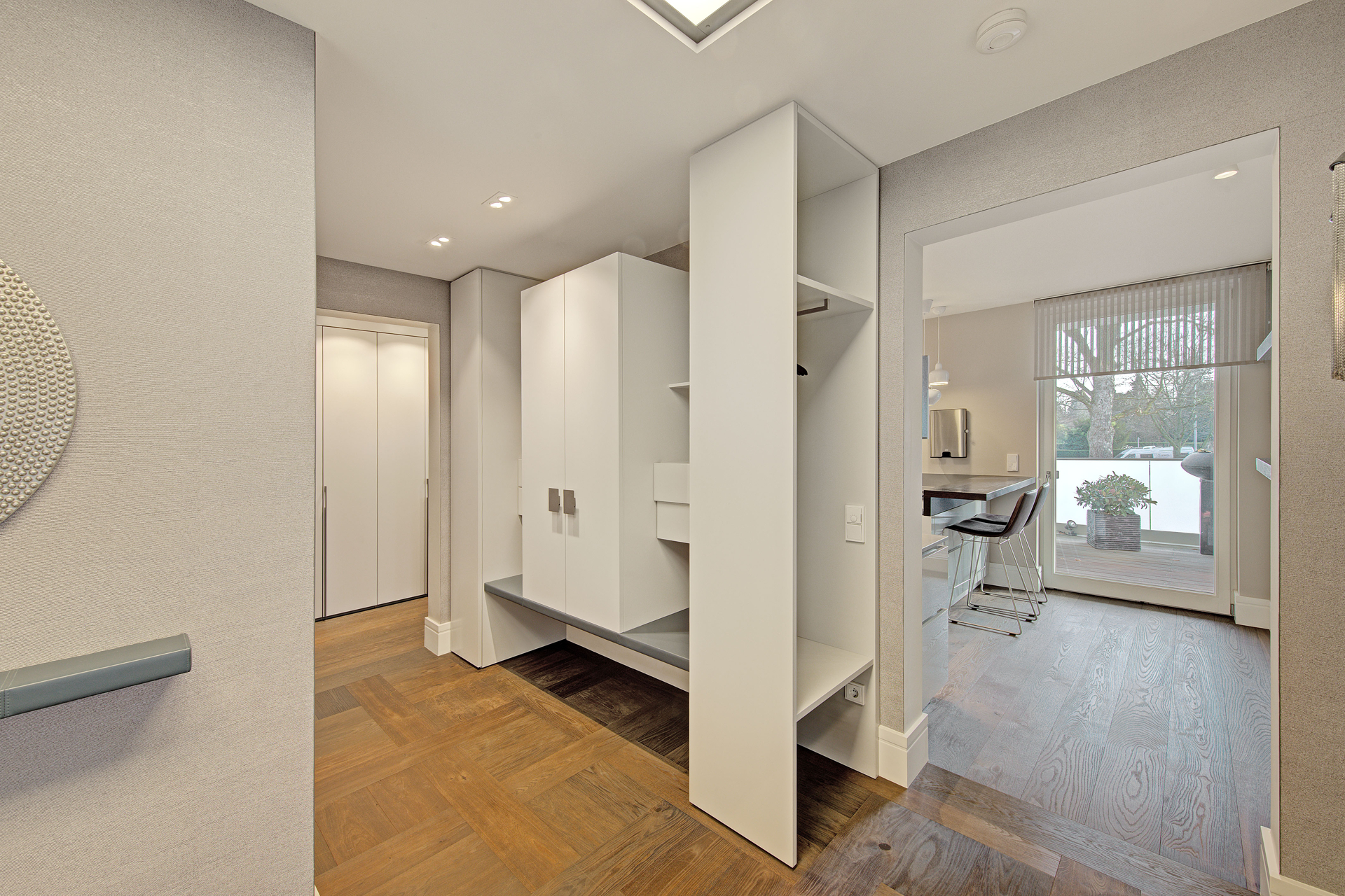 - Entrée mit eleganter Einbau-Garderobe (Schuh-Büroschrank) und intergriertem Lichtkonzept