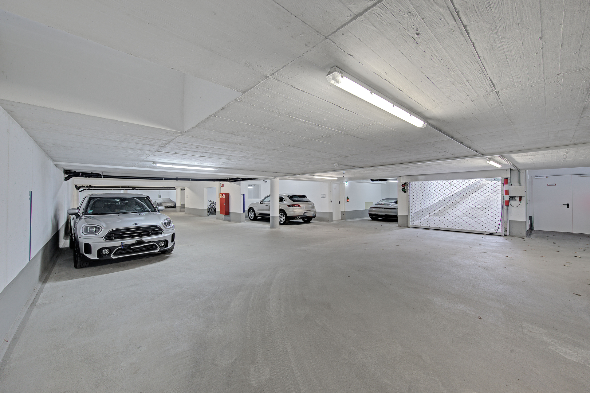 Ein geräumiges Kellerabteil und zwei Tiefgaragen-Stellplätze machen dieses repräsentative Domizil perfekt.