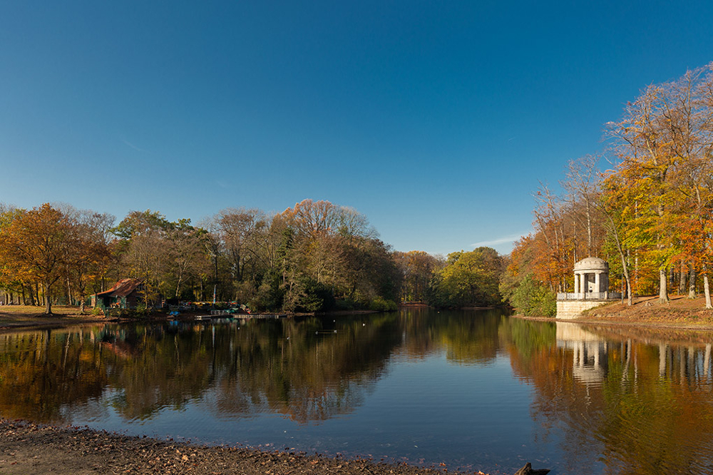 Hier finden Sie eine große Freifläche für Sport und Spiel, einen Kinderspielplatz, eine weitverzweigte Weiheranlage mit einem Tret- und Ruderbootverleih sowie schöne Spazier- und Laufwege.