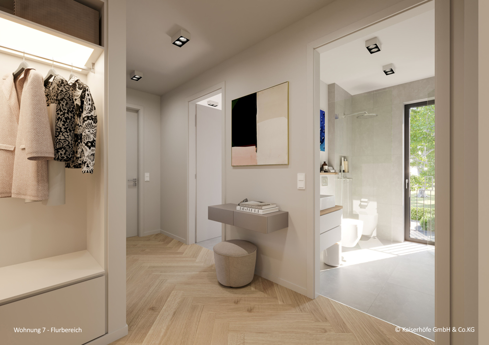 Das Neubauvorhaben KAISERHÖFE KREFELD ist in allen Bereichen barrierearm und seniorengerecht geplant. Sowohl die Eingangsbereiche, als auch in der Tiefgarage, zu den Aufzügen, in den Duschen oder Balkonen und Terrassen sind stufenlos.