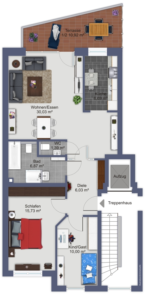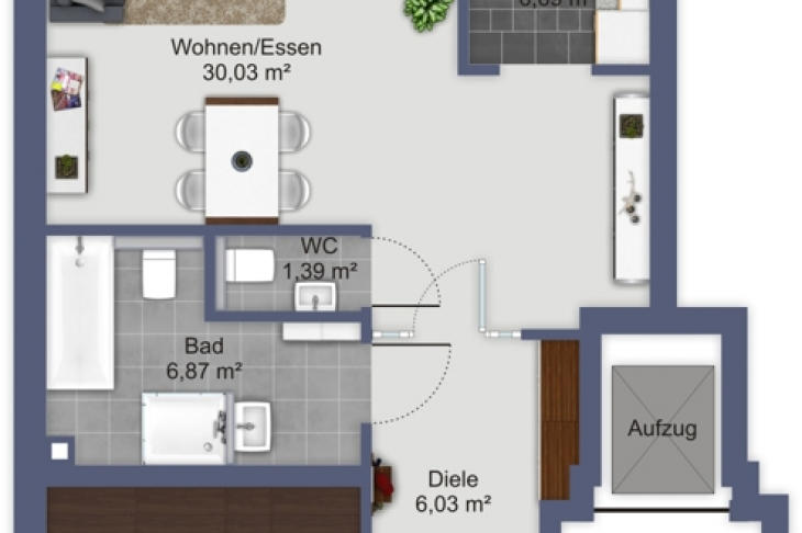 - Wohnungstür und Gäste-WC-Tür sind schallisoliert