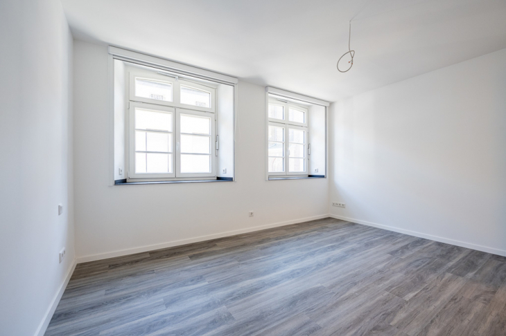 Die Wohnungen im offenen Loft-Stil, die sich über die gesamte Gebäudetiefe erstrecken, sind sowohl über das Treppenhaus als auch über einen Aufzug zu erreichen. Die moderne Ausstattung umfasst hochwertigen Vinylboden in Holzoptik, Fußbodenheizung, Rollläden bzw. Verdunkelungsrollos, eine Video-Gegensprechanlage und straßenseitig dem Denkmalcharakter entsprechende Holzsprossenfenster. Alle Wohnungen verfügen über außergewöhnlich große Outdoor-Bereiche.