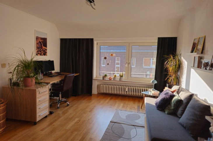 Die hier angebotene sonnige Dreizimmerwohnung befindet sich am Rande des begehrten Krefelder Bismarckviertels parallel zur Bismarckstraße unmittelbar am Schillerplatz. Die Nachbarschaft besteht überwiegend aus gepflegten Mehrfamilienhausstadthäusern.